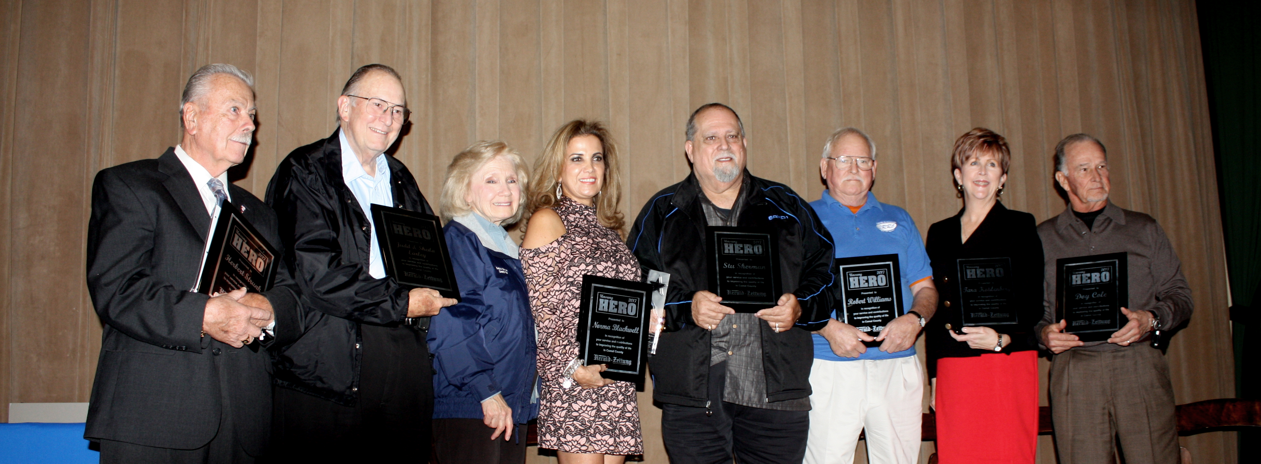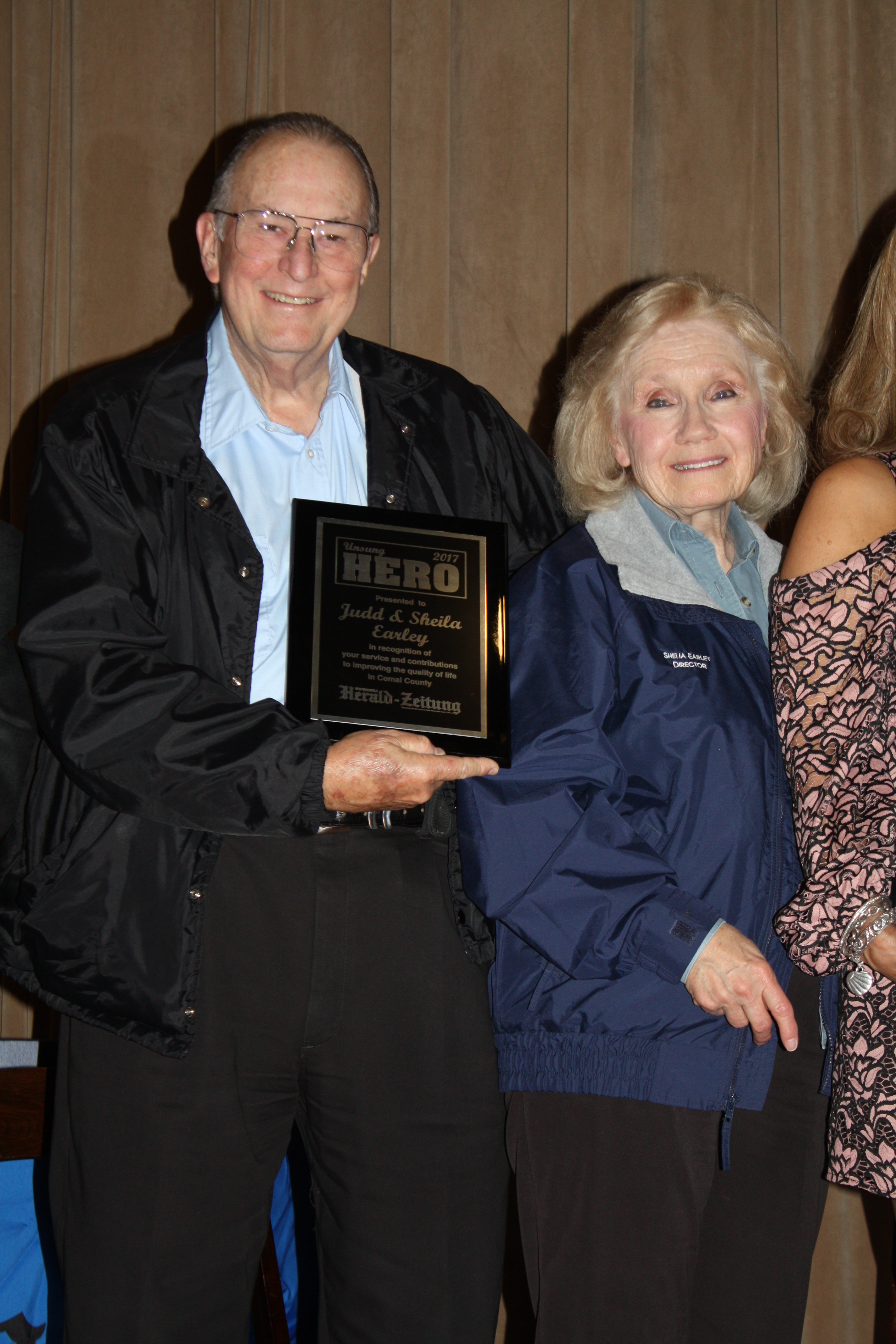 The 100 Club of Comal County Founders, Judd and Sheila Earley, were honored on Wednesday with the Unsung Hero 2017 award. The unsung heroes recognition is a longstanding tradition at the Herald-Zeitung as the newspaper annually selects individuals from the city and county who are making a difference either through their work, by volunteering in the community or both.