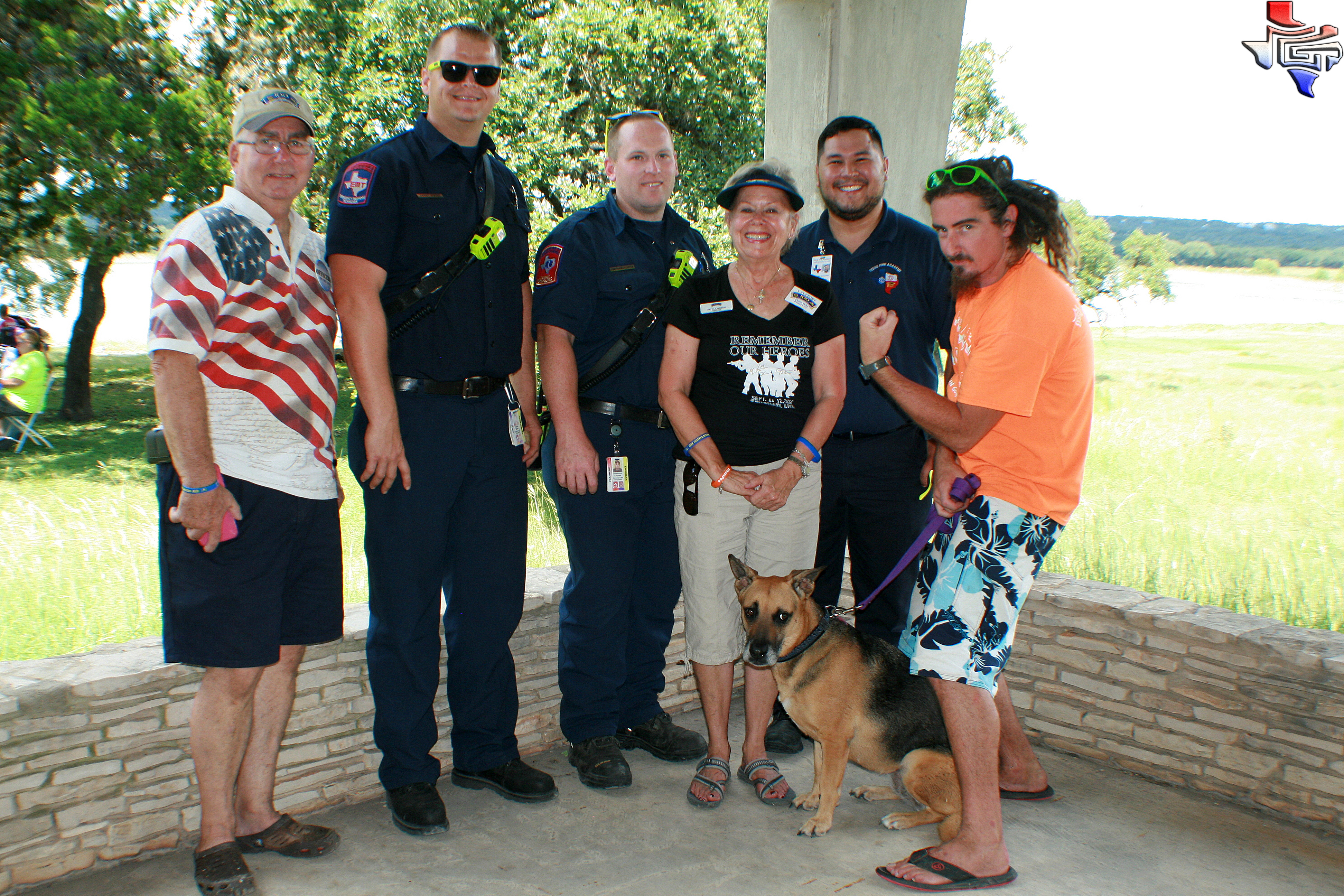PHOTO: Canyon Lake Fire/EMS Firefighter Casey Mainz and Engineer Christopher Clapper (who was honored by the 100 Club of Comal County as the 2014 Outstanding Paramedic of the Year), Patti Johnson (Board Member of the 100 Club),Pedro Gonzales and Chris Pershall (Organizer of Frontline Fiesta).